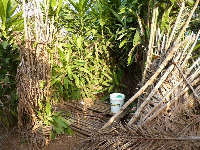 Aktuell wurden wir mit einer anderen Schwierigkeit konfrontiert: Nur einer der beiden Fuehrer hatte eine Taschenlampe, waehrend ich meine Stirnlampe im Zimmer gelassen hatte. Waehrend wir den grob markierten Weg zurueckstolperten, fiel die Nacht ueber uns wie ein schwarzer Vorhang. Wir kamen nur langsam vorn, da die Beiden den Weg fuer den naechsten Morgen mit zusaetzlichen Zweigen markierten. Der zweite Fuehrer nutzte nun sein Handy als zusaetzliches Leuchtmittel; ich lief in der Mitte der Beiden weiterhin lichtlos. Ewigkeiten kaempften wir uns durch den finsteren Dschungel. Haetten wir nicht laengst wieder den Weg erreichen muessen? Ich spuerte, dass irgendetwas nicht stimmte. Wir hatten die Fortsetzung des Weges verloren und die Beiden waren sich uneins, in welcher Richtung zu suchen sei. Waehrend sie in entgegengesetzten Richtungen losliefen und umherirrten, verharrte ich am Ort der Trennung. Sie entfernten sich immer weiter von mir, ich verlor fast ihre Lichter aus den Augen. Kurz bevor ich mich in der Finsternis des Waldes raeuspern wollten, kehrten sie zu mir zurueck. Ich stellte keine Fragen und lief ihnen wortlos in einer gemeinsam eingeschlagenen Richtung hinterher. Kurz darauf erreichten wir den Hauptweg.