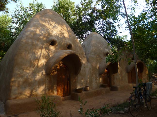 Hobbit-Haeuschen im "tribewanted" am John Obey Beach