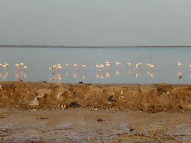 Art Salzsee auf und am Horizont flimmerte Kaolack mein Ziel.